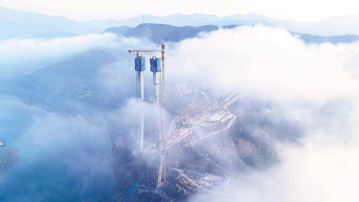 十巫南高速新洲特大桥主塔封顶。(受访者供图)