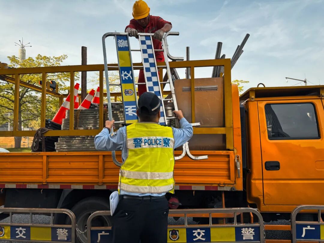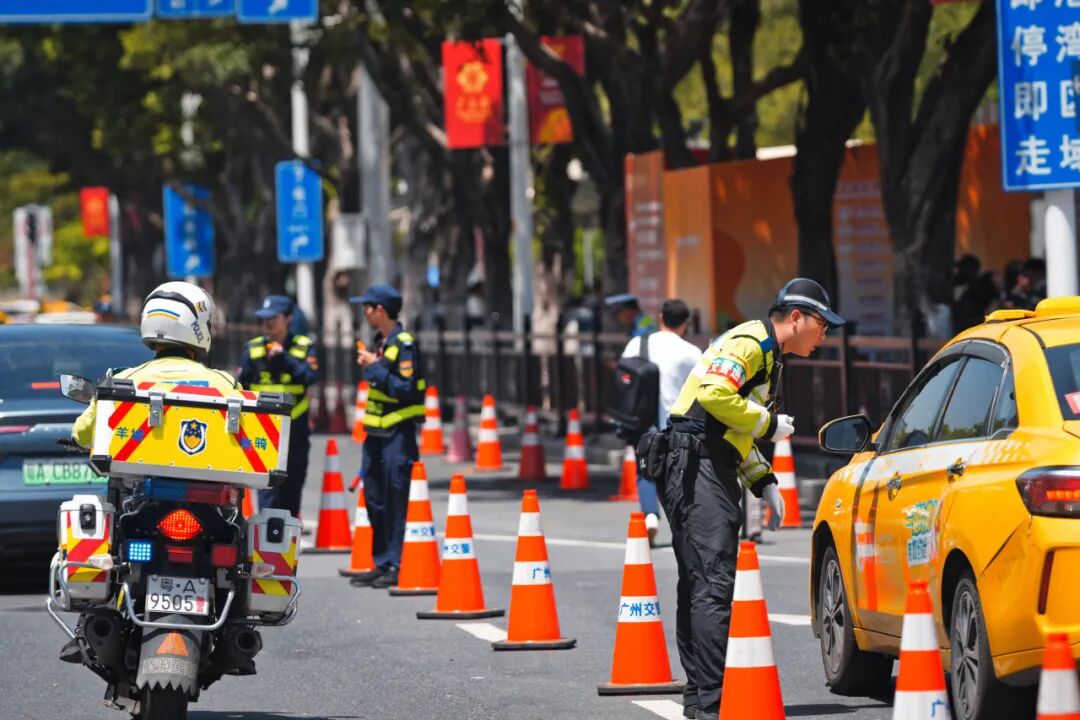 广州交警将提前在广交会展馆周边道路设置交通管控、分流疏导及交通指引等临时设施,重点在各出入口及人流密集路段加装硬隔离设施,防止行人随意横穿马路,规范人车通行秩序,保障交通安全有序。