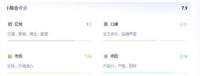 需要注意的方面:项目的“价值潜力”和“生态”评分相对一般,这与区域发展成熟度及周边城市界面有关。此外,“开发商口碑”评分有提升空间。