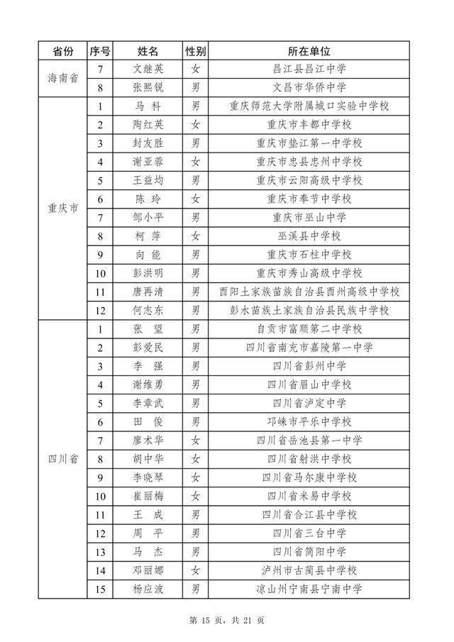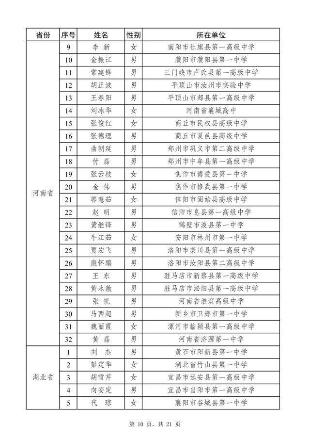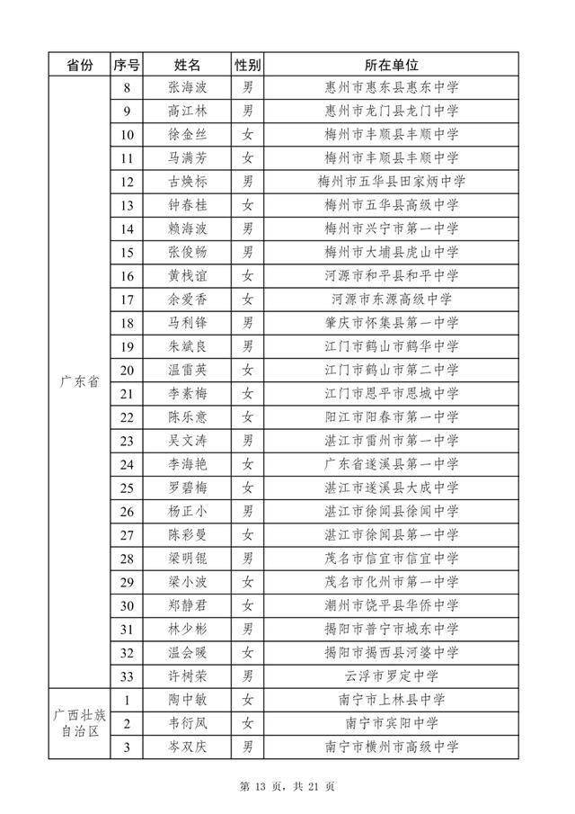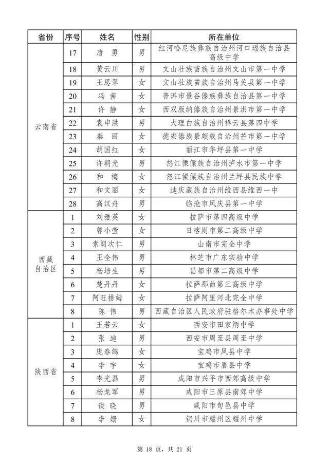 附件:全国县域普通高中头雁教师岗位计划人选名单