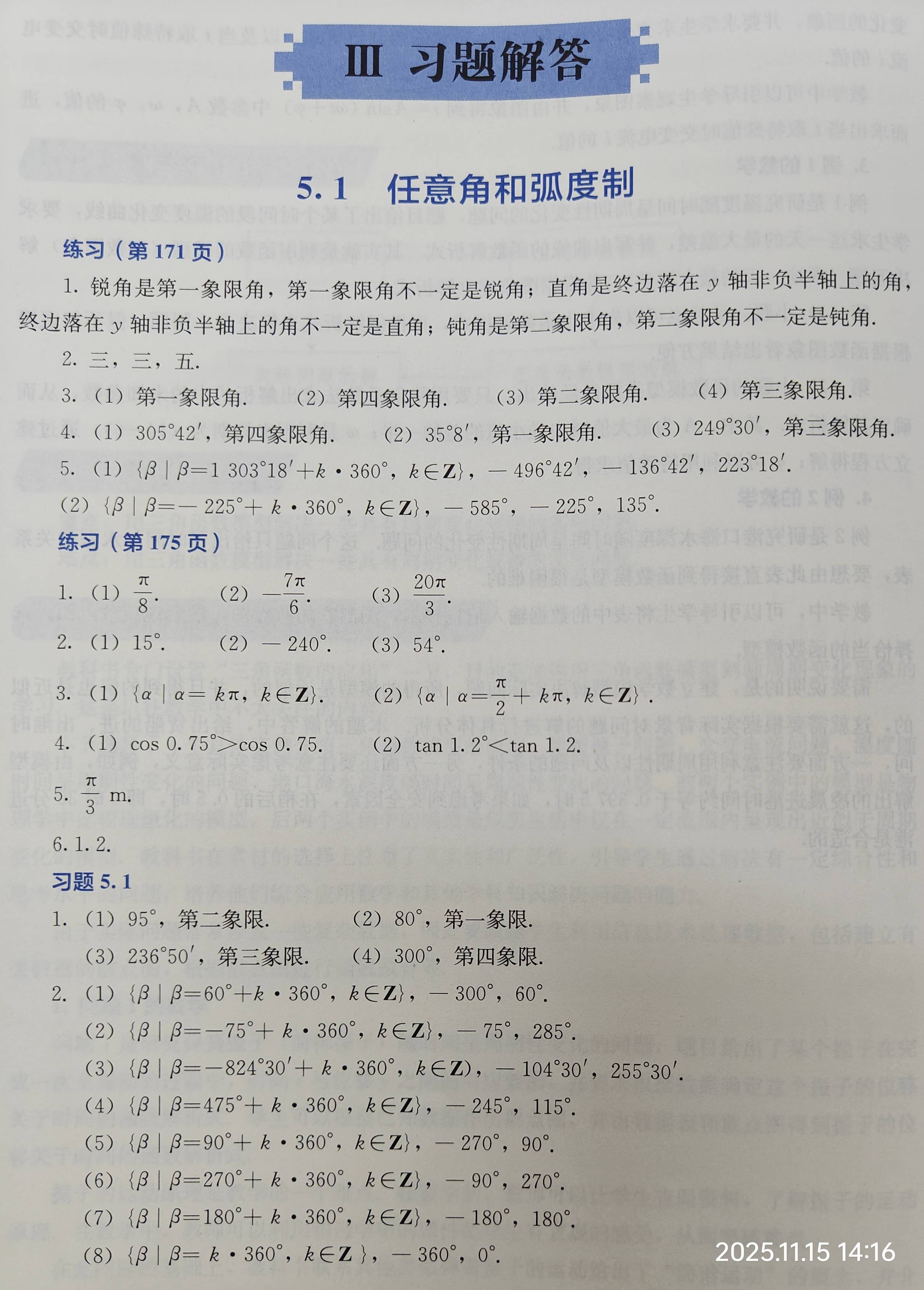 我的教育教学策划1874:双休日可以休息,还可以对答案(《必修一第五章》)【2025.11.15.周六】