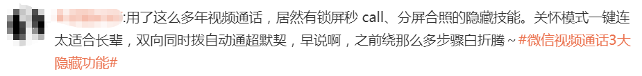 打视频电话,常得三步走。打开微信,点进好友聊天页,再点击「+」号发起通话。但现在打开微信关怀模式「一键视频通话」就能跳过前奏,直达主题,在手机锁屏界面秒CALL对方。