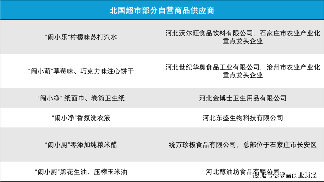 图:北国超市部分自营商品供应商