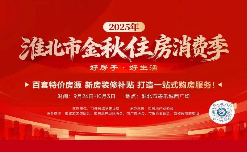 为全面助力市民安居乐业,积极推动我市房地产市场健康发展,由淮北市住房和城乡建设局主办、淮北市房地产业协会承办的“好房子,好生活”——2025年淮北市金秋住房消费季活动将于9月26日(本周五)上午9点在碧乐城西广场盛大开幕!