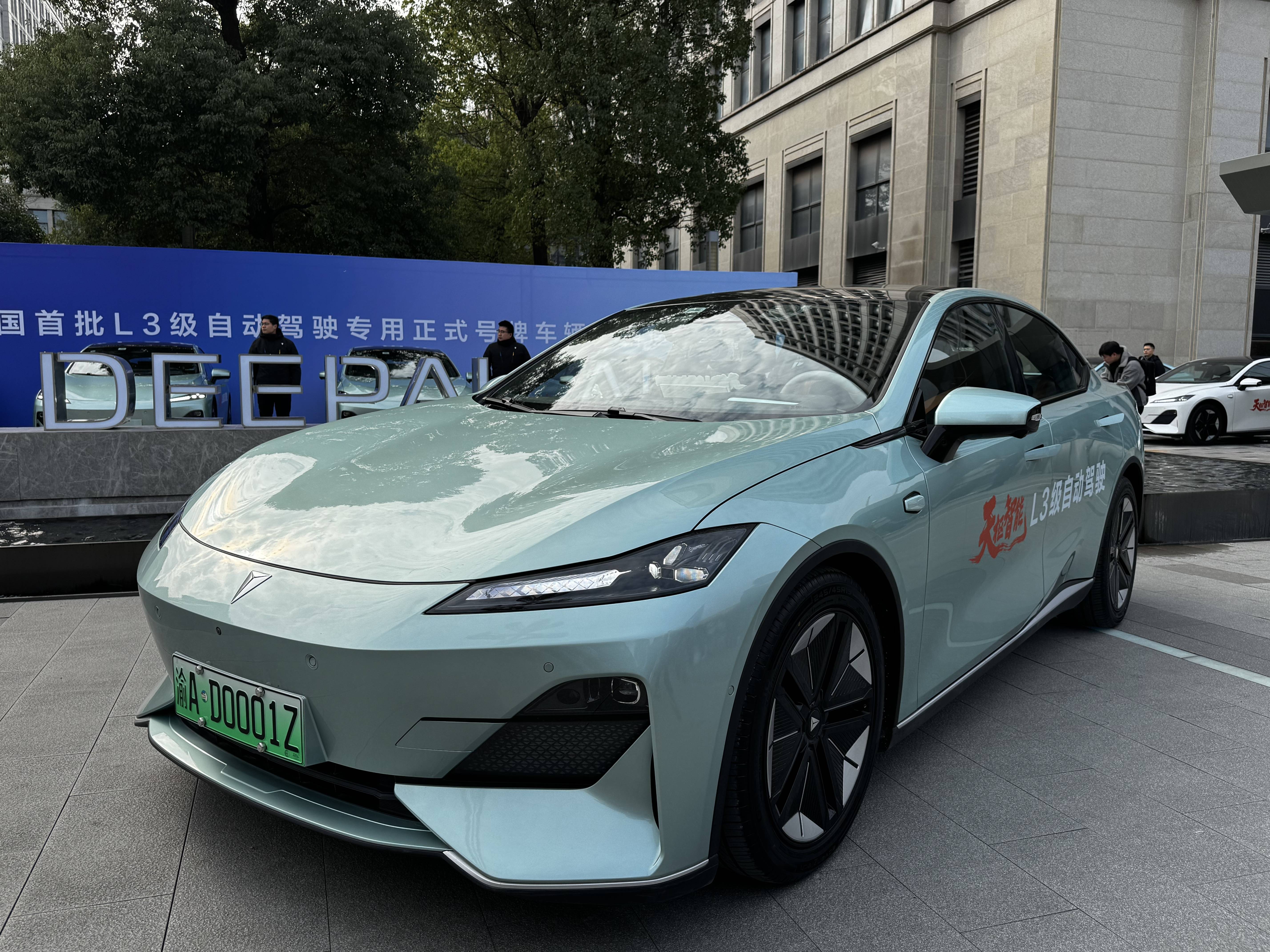 深蓝首批L3级自动驾驶专用正式号牌车辆上路通行。企业供图