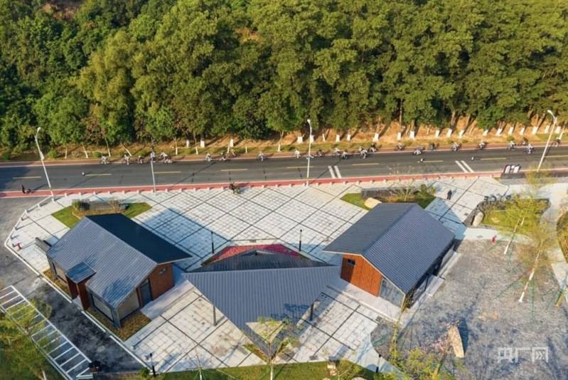 位于正果镇庙尾村的庙尾驿站,建筑面积120㎡,环境清幽、绿意环绕。作为最美旅游公路骑行线路上的重要休憩点,驿站依托“村委聚核、田绕村郭、农耕为基”的地理与产业特质,将自然生态与人文景观巧妙相融,充分展现正果乡村的和美风貌与田园诗意。驿站通过改造扩建原长廊建筑,配套建设停车场、拓展营地、集散广场等设施,为游客提供停车休憩、如厕淋浴、自行车简单维修等服务功能,并联动周边的农庄和民宿提供餐饮、住宿服务,打造了完整的旅游服务链条。