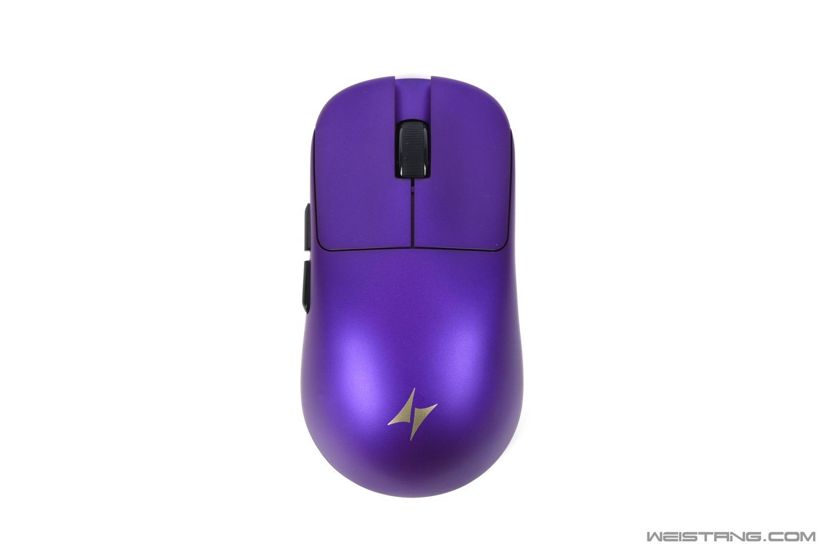 金属紫这个配色很惊艳,手感很清爽,鼠标抓握很稳,但后部比较饱满,所以如果追求掌中灵活性的话显然这款鼠标不是最好的选择,但前部又很窄,所以如果是大手型玩家的话,就非常不推荐这款鼠标。