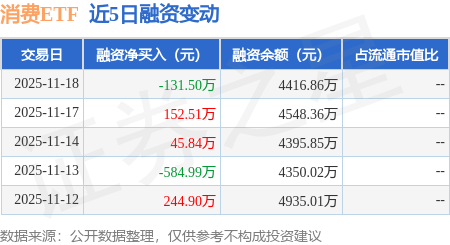 证券之星消息,11月18日,消费ETF(510150)融资买入391.35万元,融资偿还522.85万元,融资净卖出131.5万元,融资余额4416.86万元。