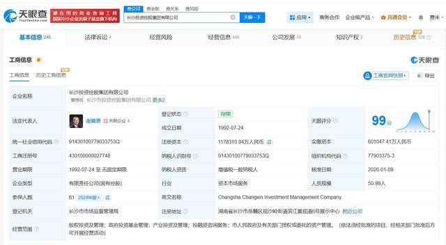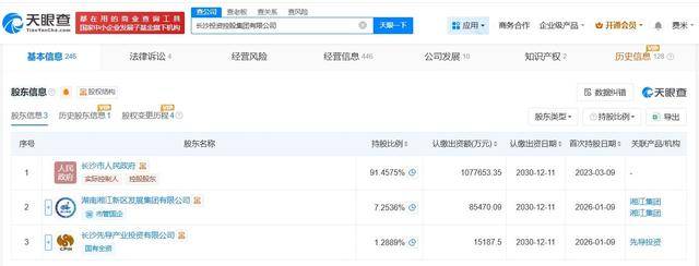 长沙投资控股集团有限公司成立于1992年7月,法定代表人为谢冀勇,经营范围包括股权投资及管理、政府投资基金管理、产业投资及管理等。股东信息显示,该公司由长沙市人民政府及上述新增股东共同持股。