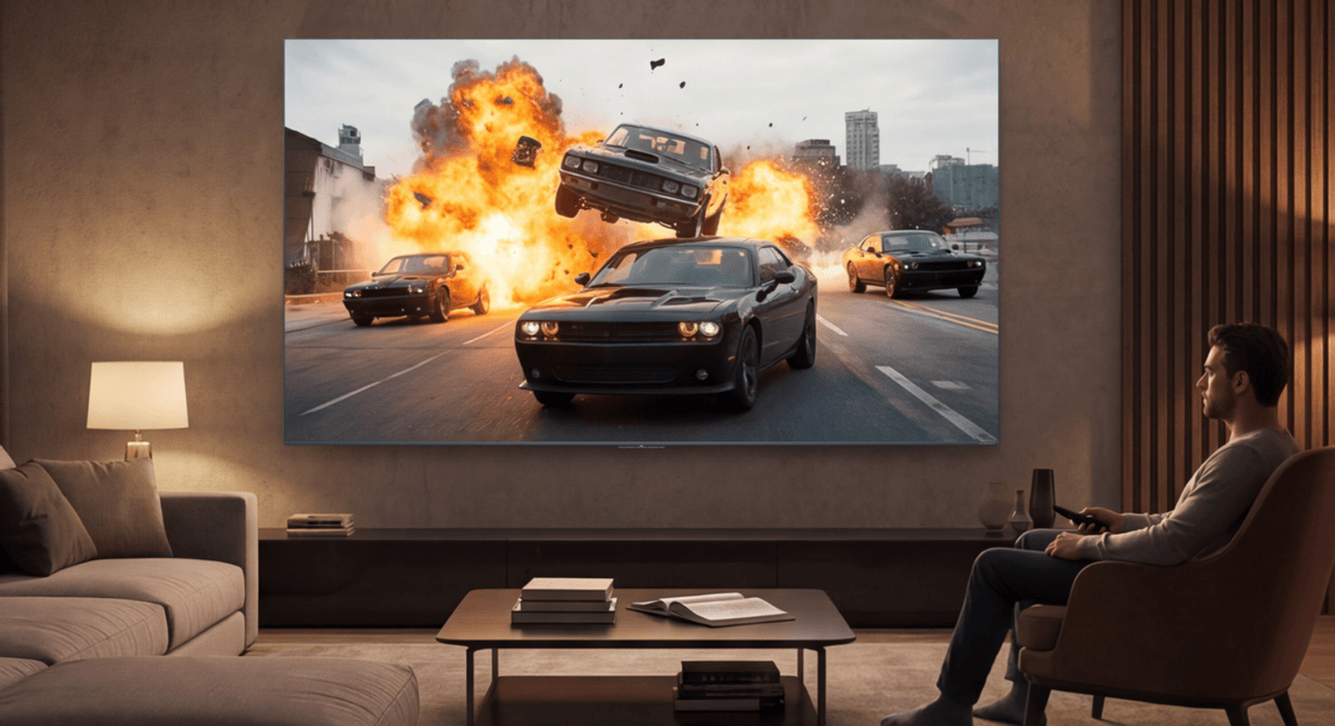 搭载的TSR AI光色同控芯片和伏羲AI大模型,还能智能优化画面参数,根据不同的内容自动调节亮度、色彩,不管是看有线电视、流媒体还是蓝光碟,都能有最佳的观感。