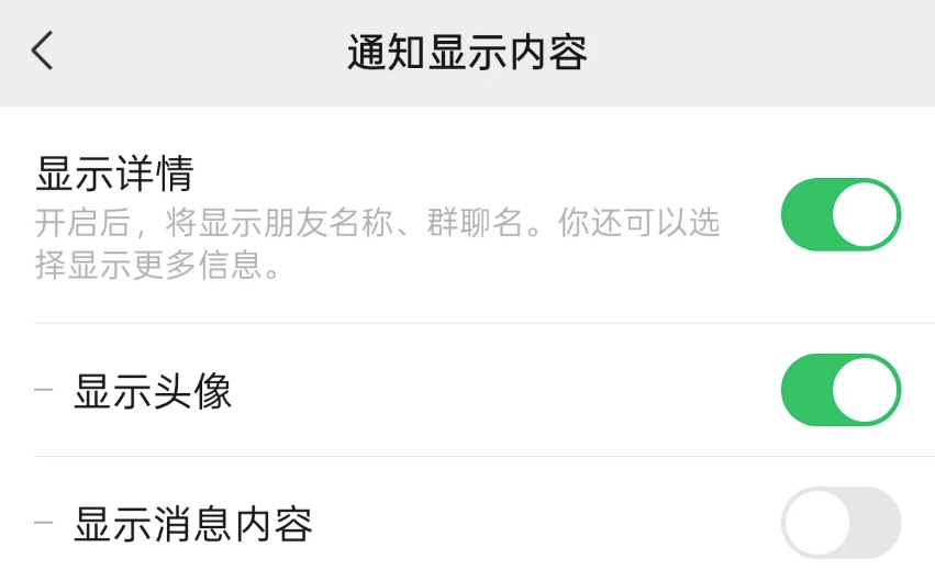 而且微信很贴心,还做了三种显示模式:想省事就全开头像和消息内容,公共场合怕泄露隐私就只显头像,想清净就全关,完美兼顾便捷性和隐私。