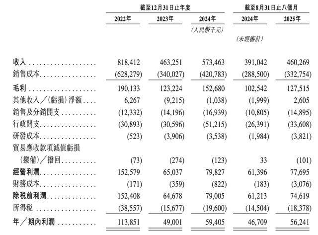 数据显示,2022年至2025年前八个月,公司来自前五大客户的收入占比长期维持在55%左右,其中最大单一客户在2025年前八个月贡献了17.7%的收入。这种深度绑定关系意味着,若主要客户中断合作,公司将面临重大经营风险。