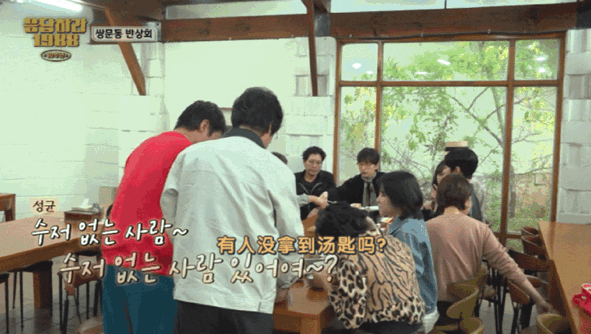会很贴心照顾他人情绪,看到「善宇」独自在外面烤肉,一个劲地给他喂生菜包。