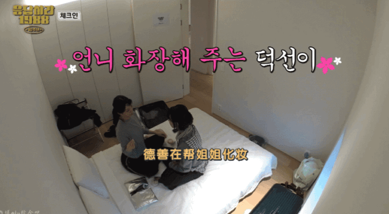一起盘腿坐在床上化妆,没说两句就笑成一团。