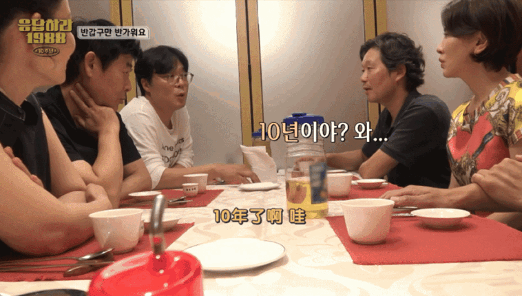 剧中父母辈演员私下喝酒聊天时提到,《请回答1988》播出已经有10年了。