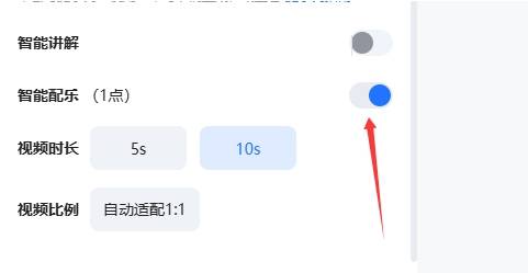 一个好的BGM不仅可以提高视频整体格调又能让用户更加沉浸其中,所以我们可以开启智能配乐功能,开启后系统会在生成视频时自动为我们匹配符合产品调性的背景音乐。