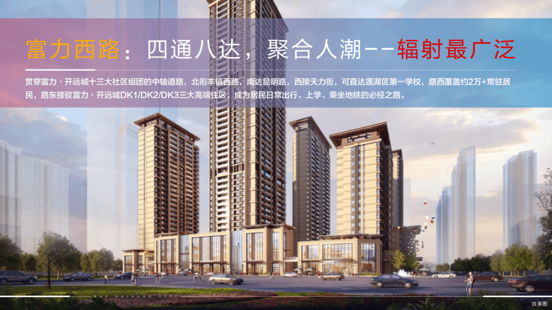 土门板块与高新一期周边商业状态成熟,租金态势良好,投资收益稳定。富力·开远城凭借优越的地理位置,周边2-3W的住宅均价,打造高消费稀缺钻铺,让投资经营更轻松,资产升值更稳当