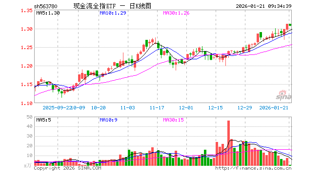 现金流全指ETF(563780)业绩比较基准为中证全指自由现金流指数收益率,管理人为方正富邦基金管理有限公司,基金经理为于润泽,成立(2025-04-30)以来回报为31.09%,近一个月回报为6.14%。