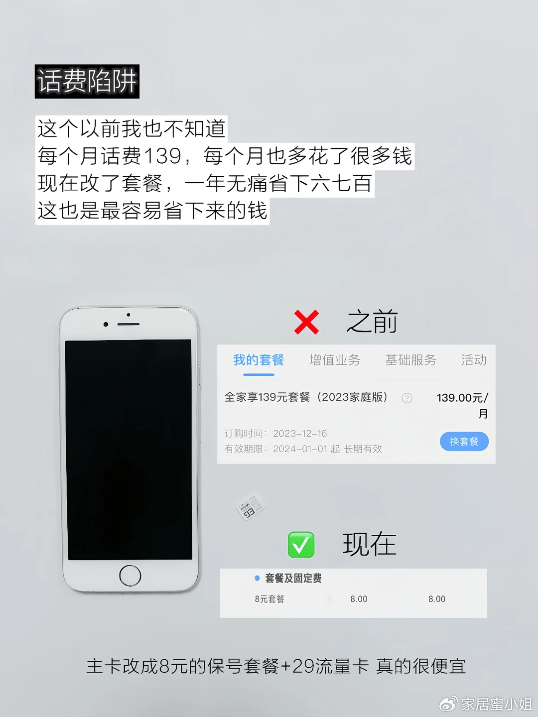 关键这个钱是你完全用不上的,也是可以省下来的,如果你的话费套餐很贵,你也用不上,那不如把它换成低消费的套餐,
