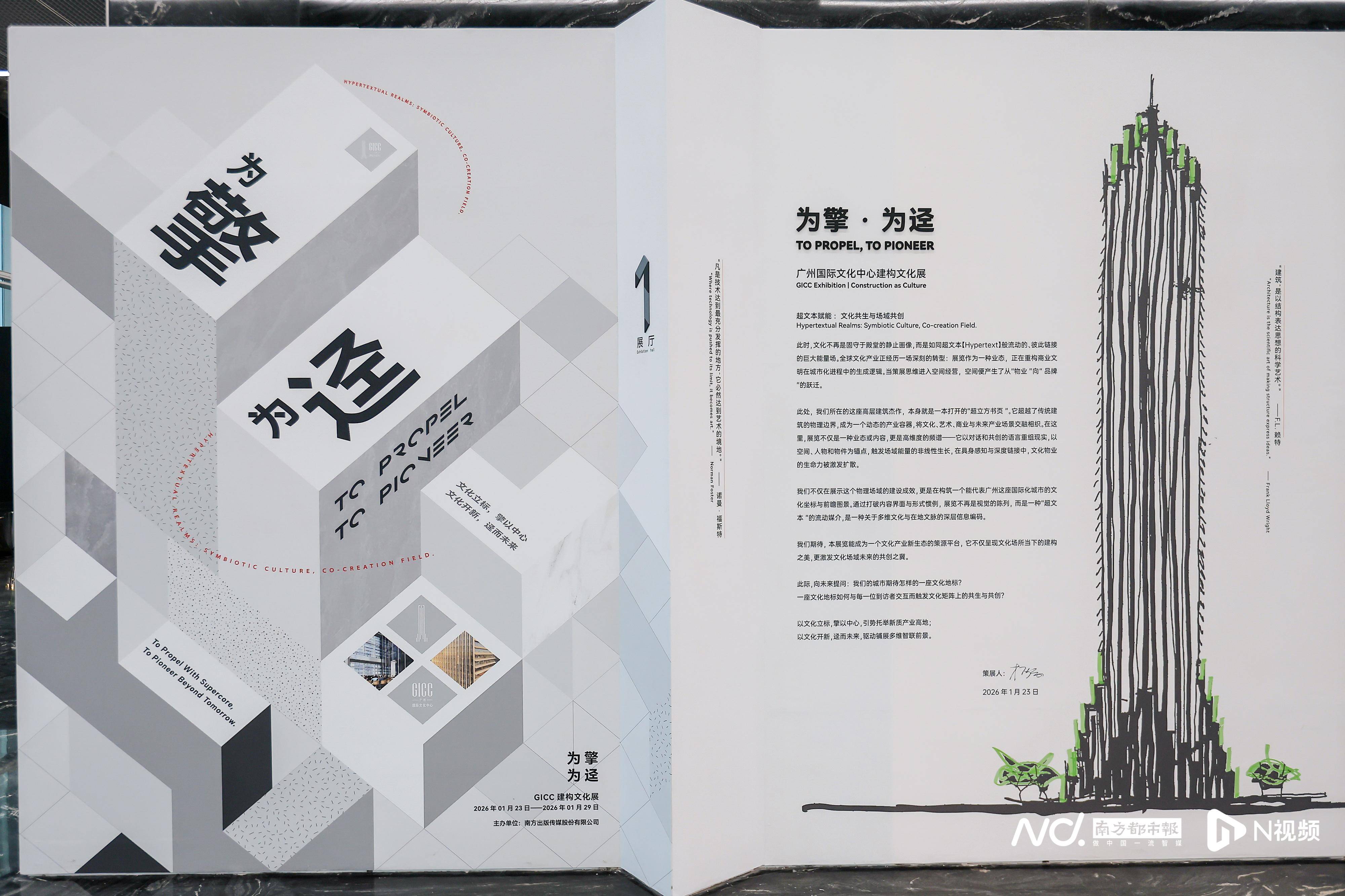 南都N视频记者从会上了解到,广州国际文化中心(GICC)由南方出版传媒投资建设,高320米,总面积约16.2万㎡,总投资约45.6亿元,致力成为“广州城市人文标杆、湾区创意产业高地、国际文化生态枢纽”,推动粤港澳大湾区文化产业高质量发展。