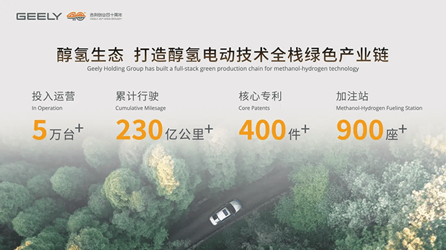 在醇氢电动生态上,这是吉利的特色新能源路线,吉利在绿色甲醇领域深耕20余年,已形成全产业链竞争优势,醇氢电动汽车运营已超5万辆,累计行驶里程超230亿公里,形成核心专利400余件。