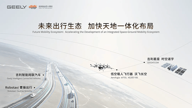在未来出行生态上,吉利的天地一体化立体出行布局正加速落地,曹操出行“绿色智能通行岛”已投入运营,预留eVTOL起降坪和充电接口,实现Robotaxi与eVTOL的无缝接驳,而时空道宇的低轨卫星网络则提供全域通信覆盖。