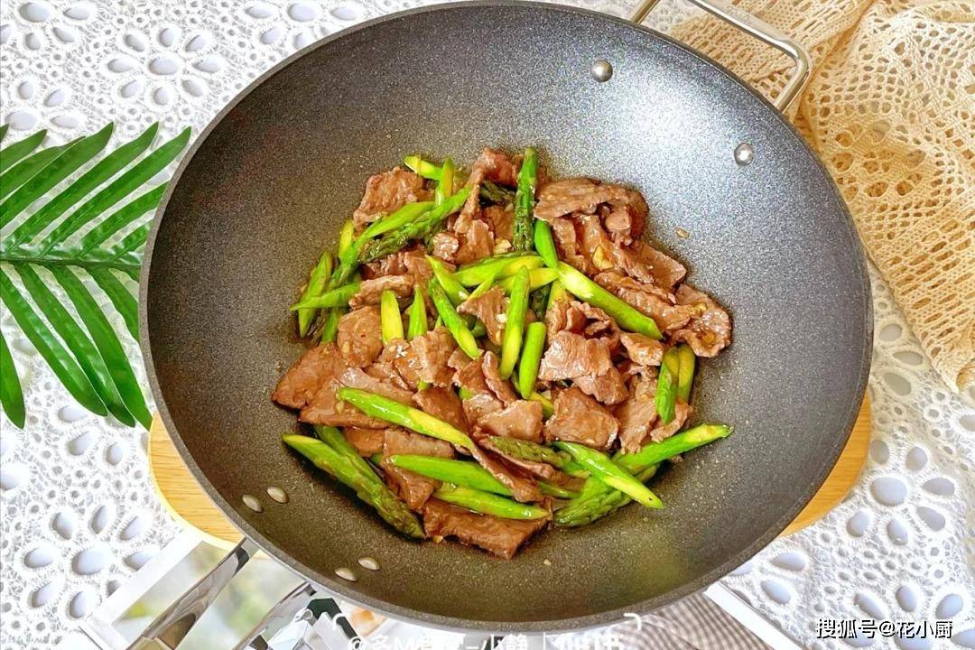 食材:牛肉 300 克、芦笋 250 克、 3 瓣蒜