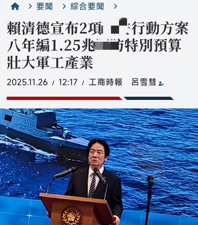 2025年末,赖清德一边在元旦讲话中信誓旦旦地喊着“强化防务”,一边却急得像热锅上的蚂蚁,催促立法院火速通过1.25兆军购预算。