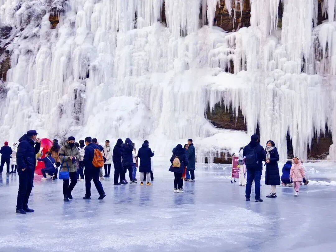走进长治平顺的通天峡景区,碧绿的冰面布满天然裂纹,巨大的白色冰瀑直挂山崖,木质栈道在冰柱间延伸,游客可在冰面上行走嬉戏,或沿栈道登高观景。