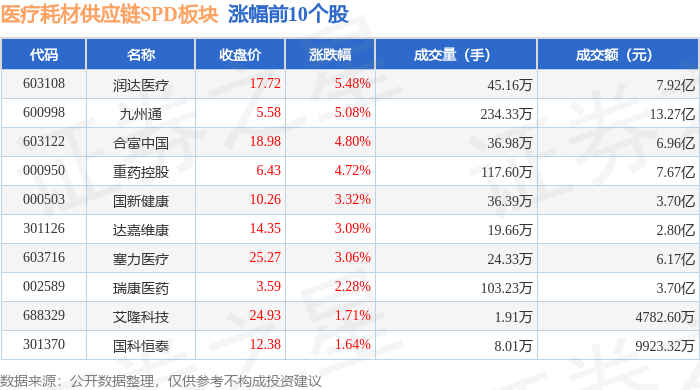 证券之星消息,1月23日医疗耗材供应链SPD板块较上一交易日上涨1.86%,润达医疗领涨。当日上证指数报收于4136.16,上涨0.33%。深证成指报收于14439.66,上涨0.79%。医疗耗材供应链SPD板块个股涨跌见下表: