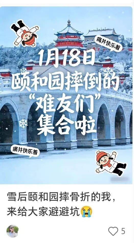 小红书上就已经出现了几个上周末去颐和园玩结果摔成骶骨骨折的“受害者”。