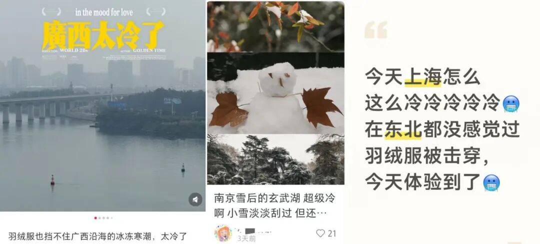 这个冬天打破了大家过去几年对于“暖冬”的固定印象,尤其是1月初还在大幅度回暖的南方地区,这几天又是降温又是冻雨,时不时还飘几片认真的雪花。