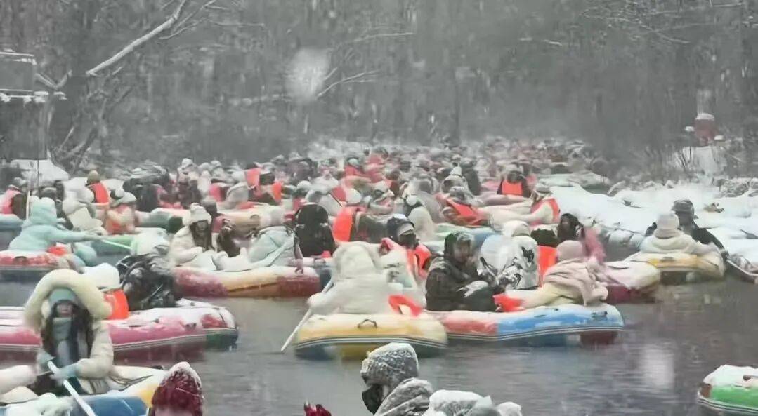 这漂流夏天玩的时候是凉爽惬意,冬天坐在上面就是“掉进冰窟”走进现实。几乎所有体验过的人都在网上大呼“避雷”“别去”,还是有人愿为难得一见的美景坐进驶向冰窟的小船。