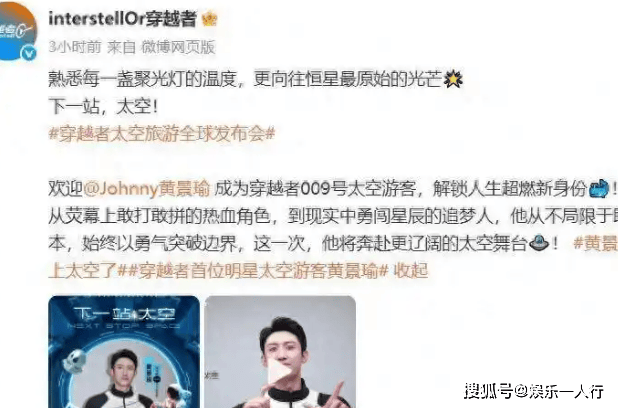 嘿,听说了吗? 那个演硬汉的黄景瑜,要去太空了! 最近北京穿越者公司官宣,他成了009号太空游客,还说要坐“中国人自己的飞船”去看星海。 这事儿一出来,网上直接炸了,300万一张船票,预付10%就能锁定名额,已经有十几个大佬交钱了,连85岁的工程院院士李立浧都签了约,2028年要跟黄景瑜一起上天!