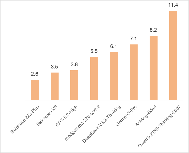 正是基于这一判断,在 M3 Plus 中,百川围绕医学场景,对模型架构、推理路径与部署形态进行了系统性的工程重构,在不牺牲模型可靠性与医学能力的前提下,将综合使用成本压缩至上一代的约 30%,为真实规模化使用打开空间。
