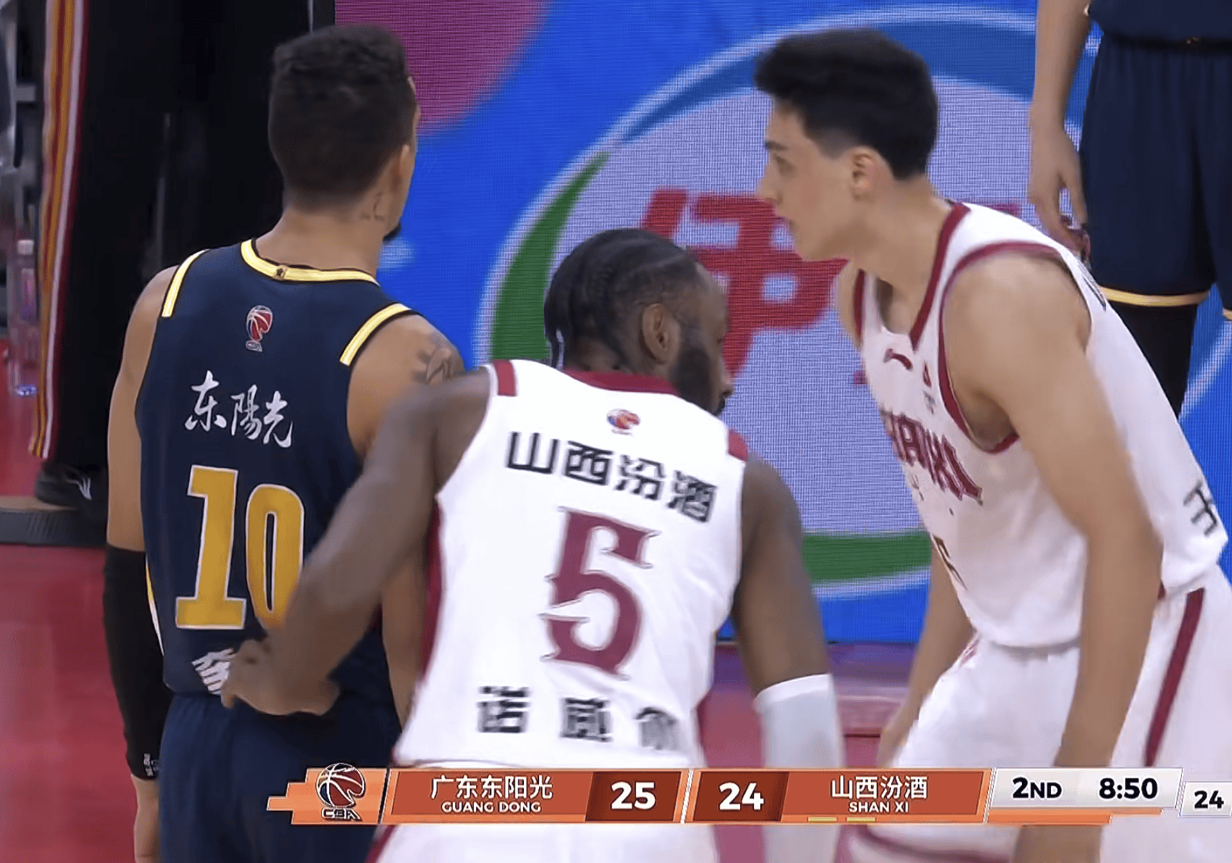 前两节北京队跟北控交替领先,比分没有被拉开。第二节还剩2分多钟时,北控42-38北京,随着丘天跟杰曼为北京队连得4分,双方打平了。佩里三分球轰进,北京队进攻24秒违例,北控的杜伯超罚球2中1,翟晓川罚球2罚都进,廖三宁压哨上篮打进,半场结束北控48-44北京。