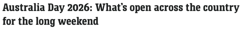 对于计划外出的人而言,今年澳洲日将有许多场所开放,但提前查看当地商店的营业时间,有助于度过一个顺畅、无压力的长周末。