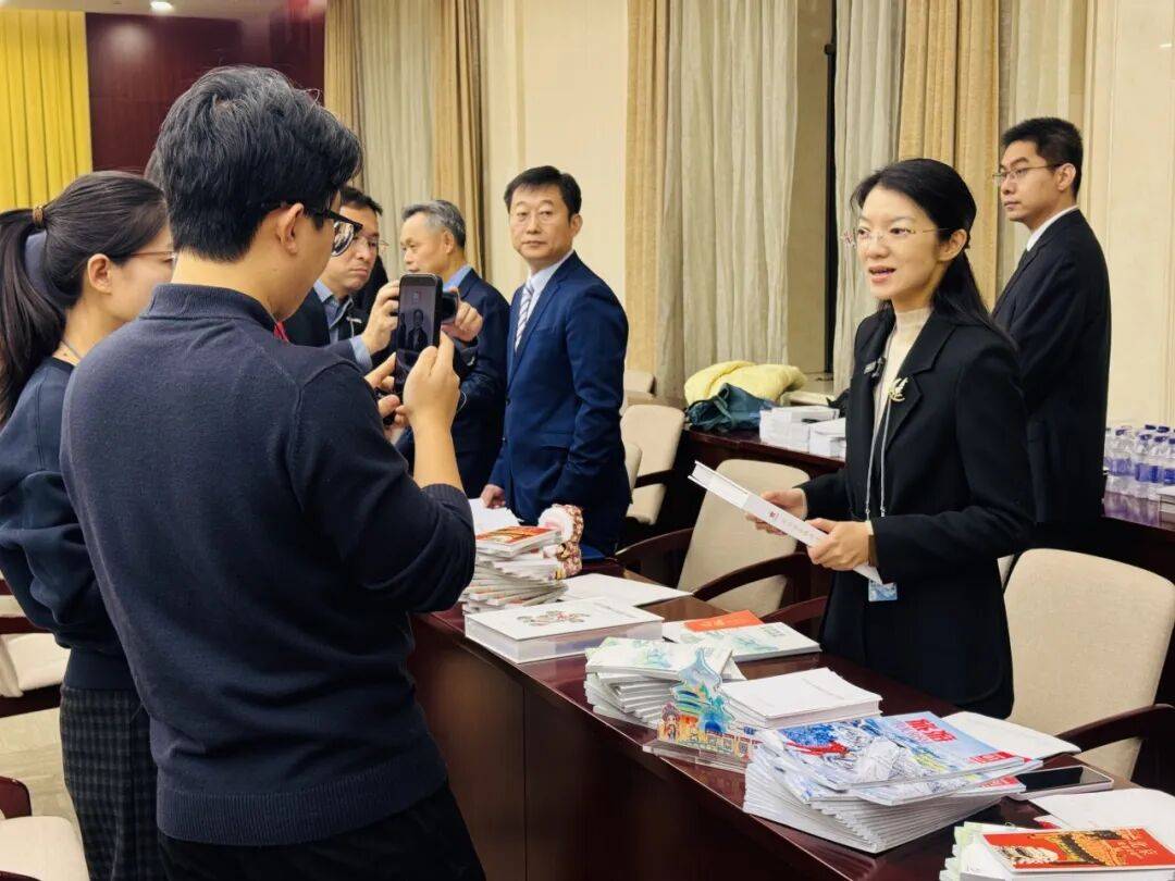 市文旅局副局长郑芳(右二)与代表和媒体现场交流/记者拍摄