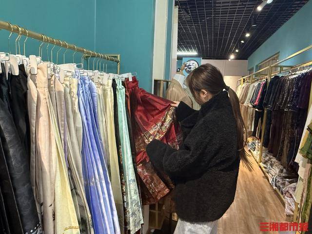 1月25日,在雨花非遗馆,专门开辟的马面裙货架格外抢眼。织锦面料的款式在灯光下泛着细腻光泽,裙摆处的祥云、麒麟刺绣针脚细密,拿起马面裙,其裙褶开合间尽显灵动,169元至279元的价格带覆盖不同消费需求。“279元的织锦款最受欢迎,厚实保暖还显质感。”店员一边整理试穿后的裙装一边介绍,前几年马面裙走红时曾创下日销数百条的纪录,而今年春节因生肖文化加持,销售热潮再度来袭,“每天都有顾客专门冲马面裙来,红色系最抢手,说是过年穿喜庆又应景。”