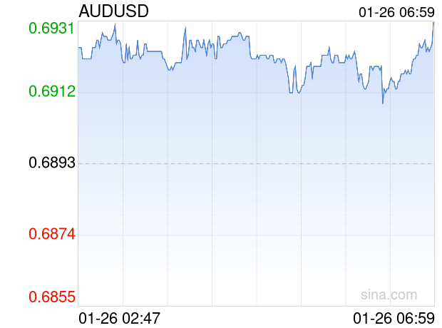 新浪外汇消息2026年01月26日,截至06时59分,外汇市场上澳元兑美元汇率突破1澳元兑换0.6931美元。涨幅为0.5513%
