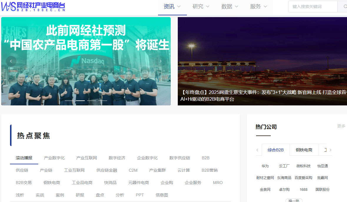 拥有专业门户“网经社产业电商台”(B2B.100EC.CN),集合资讯、研究、数据、服务四大板块。