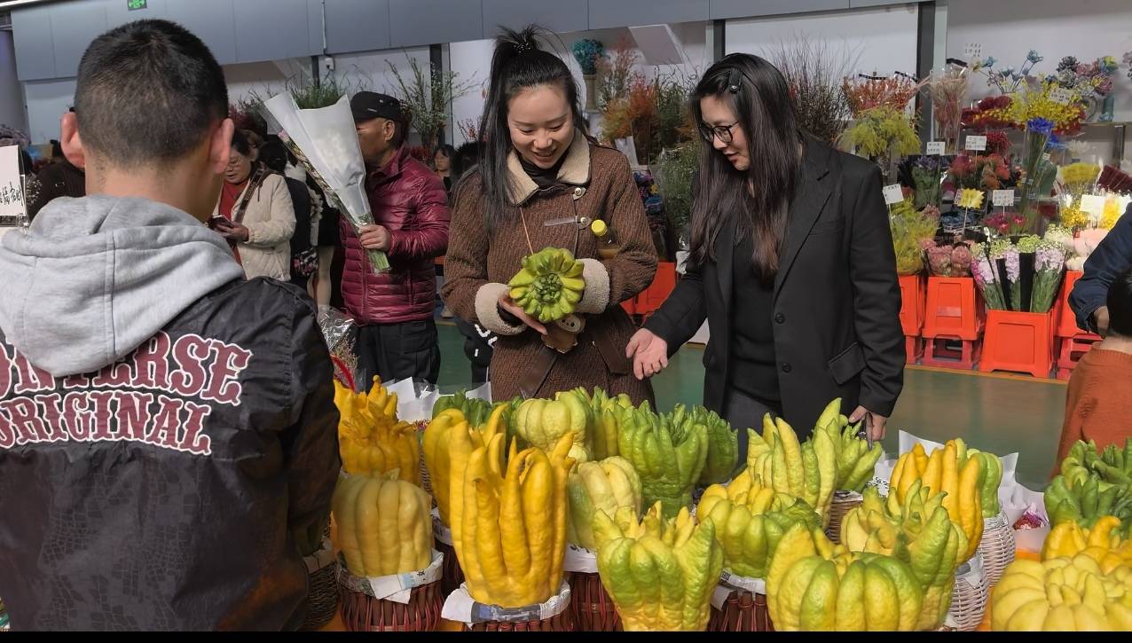 值得一提的是,今年斗南花卉市场内销售佛手柑的摊位数量明显增加,成为年宵花市场的一抹新亮点。家住北市区的李女士表示,佛手柑摆放周期长,既能观赏又可食用,摆放在室内满屋清香,是自己每年必买的新春好物。