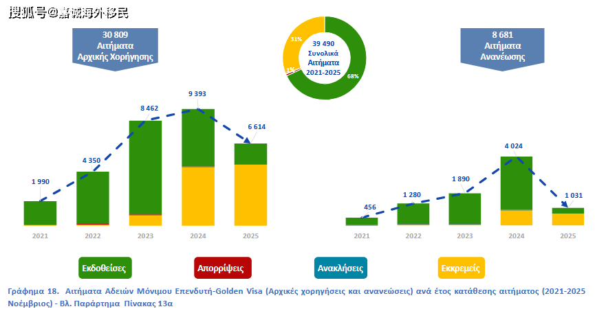 根据希腊移民局最新公布的2025年11月数据,截至2025年11月,希腊待处理的黄金签证申请数量减少至42,390件,这是自3月份改进措施开始以来最高的月处理速度。