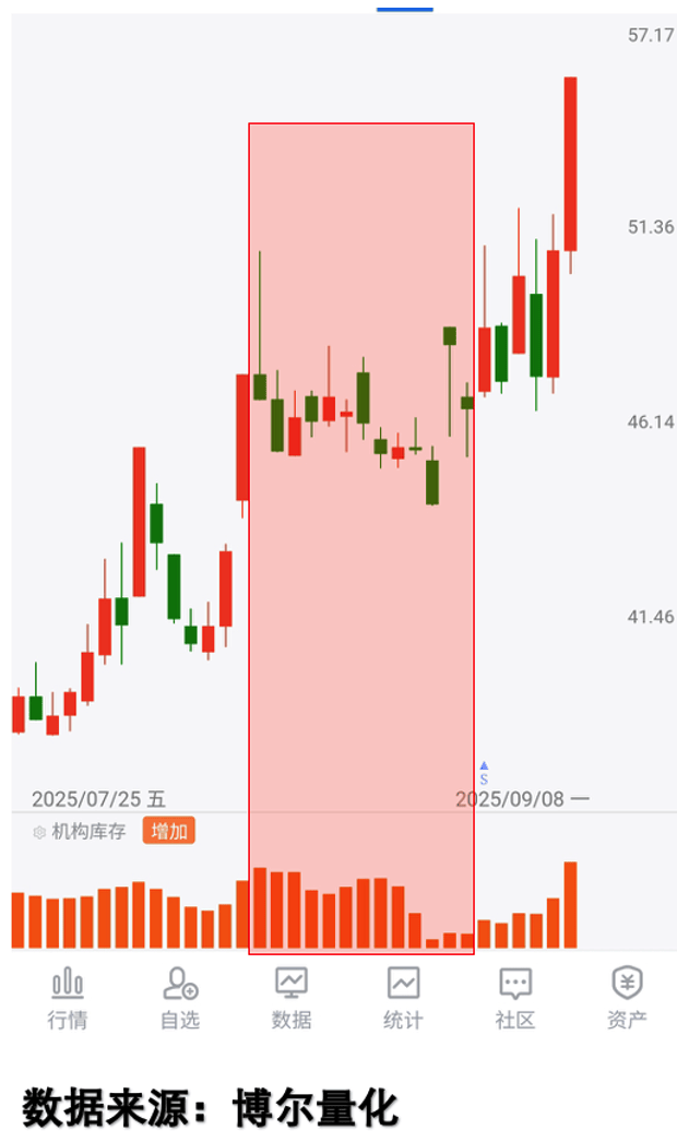 但用量化数据看就不一样了,虽然股价一直横盘,但K线下方的「机构库存」数据始终活跃,说明机构大资金一直在积极参与,这种横盘就不是无意义的震荡,而是有备而来的蓄势。后来标的走势果然回暖,要是早看到这个数据,就不会在横盘的时候被磨得没耐心卖掉,也不会错过后面的机会。