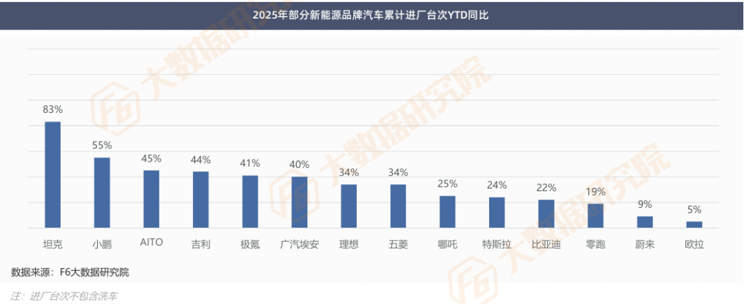 数据显示,坦克以83%的同比增速领跑行业,小鹏以55%的增速紧随其后,AITO、吉利、极氪、广汽埃安等品牌也均实现超40%的同比增长,展现出旺盛的售后需求。