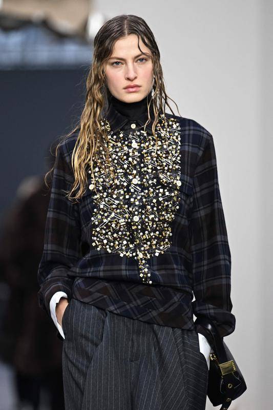 1月25日,模特在法国巴黎男装周上展示Sacai品牌2026/2027秋冬新品。