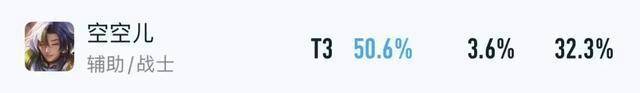 其实,空空儿在多次削弱后,巅峰赛数据也不算太亮眼,虽然BP率依旧有35.9%,但胜率却只能维持在50%左右。