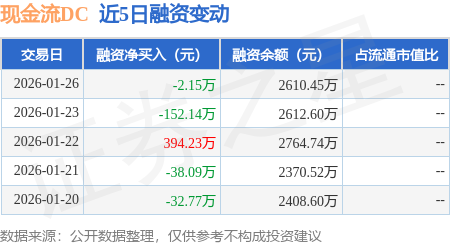 证券之星消息,1月26日,现金流DC(159235)融资买入263.83万元,融资偿还265.98万元,融资净卖出2.15万元,融资余额2610.45万元。