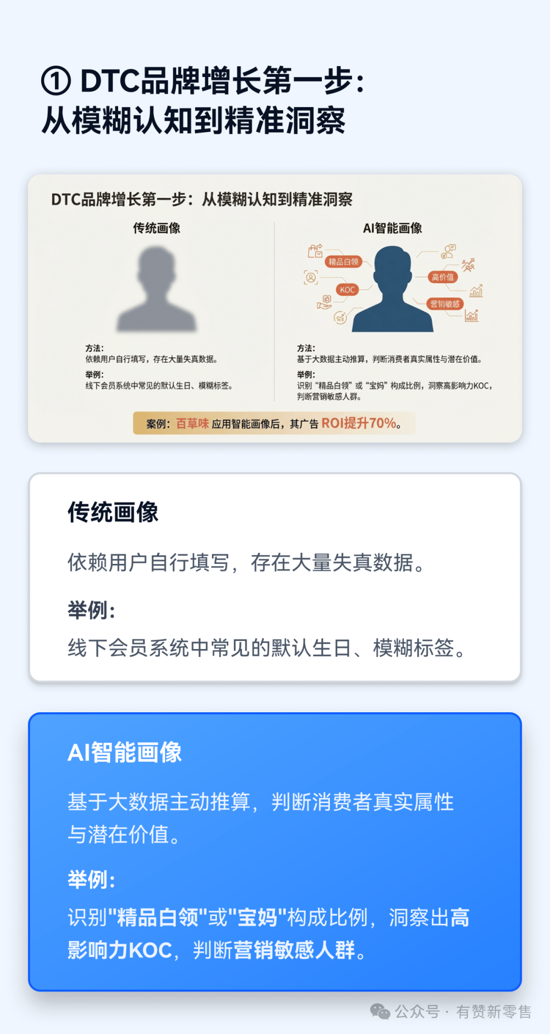 实现客户留存的第一步是精准理解消费者。传统客户画像依赖用户自行填写的信息,存在大量失真数据,如线下会员系统中常见的默认生日信息。