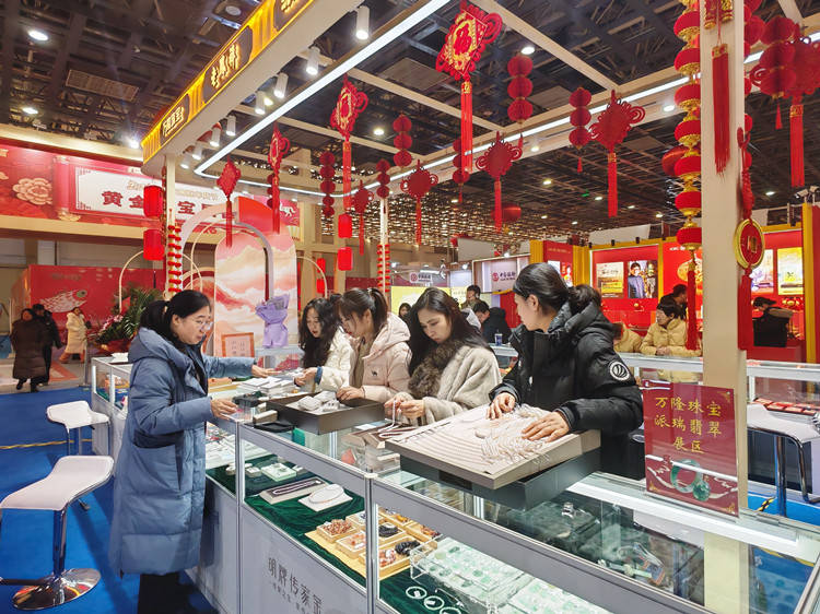 1月26日,2026年廊坊国际年货节在廊坊国际会展中心开市。图为黄金珠宝区。河北日报记者 刘杰 摄